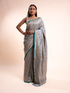 Mehalya captures the breathtaking beauty of royal heritage where ice blue silk becomes liquid poetry and Shikargah artistry flows like ancient chronicles woven in silver color color threads. This majestic masterpiece showcases the legendary Shikargah technique—where storytelling motifs meet serene sophistication, creating a symphony of timeless elegance that celebrates the art of living history.